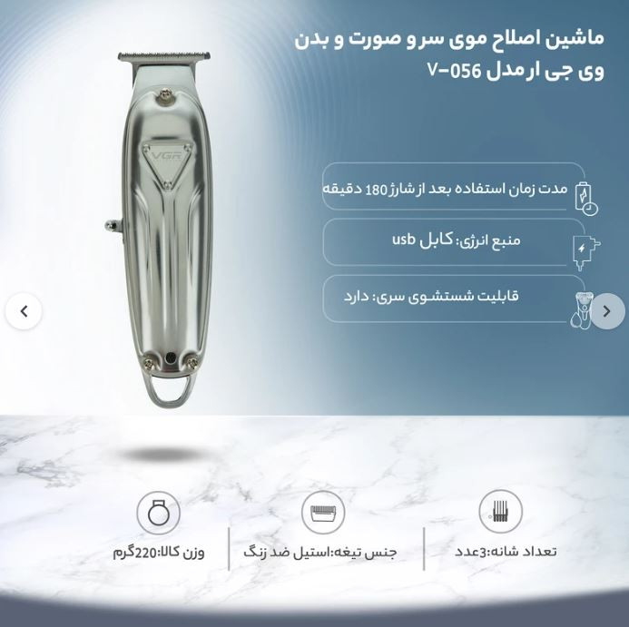 ماشین اصلاح موی سر و صورت و بدن وی جی ار مدل V-056 رنگ رندوم