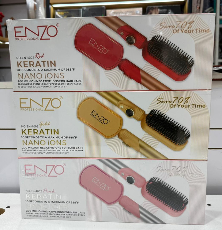 برس حرارتی انزو مدل EN-4002 استفاده از برس حرارتی مو مزایای زیادی دارد که آن را به یک ابزار محبوب برای صاف کردن و حالت دادن به مو تبدیل کرده است این ابزار های حرارتی نسبت به اتو مو یا سشوار موها را سریع تر صاف میکند زیرا همزمان با شانه کردن گرما را به مو منتقل میکند . استفاده کردن اسان از این ابزار ها یکی دیگر از ویژگی های انها میباشد و تمامی افراد حتی افرادی که دارای مهارت خاصی نیز هستند میتوانند از این دستگاه ها استفاده نمایید و برخلاف اتو مو که نیاز به تقسیم بندی دقیق مو دارد با این دستگاه فقط کافی است موها را شانه بزنید تا صاف شوند . از آنجایی که میزان آسیب رسانی این دستگاه کمتر از اتو مو است میتوان آن را برای استفاده و استایل های روزانه خود استفاده کرده بدون اینکه موها خشک و شکننده شوند و عملگرد بسیار سریع تری دارند و نسبت به اتو مو زمان کمتری برای صاف کردن مو نیاز دارد .