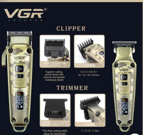 این ست بی نظیر که از دستگاه خط زن حرفهای وی جی آر V-901 و دستگاه حجم زن وی جی آر V-005 تشکیل شده جزو بهترین و پرطرفدارترین ست های دوقلو ماشین اصلاح برند VGR میباشد.