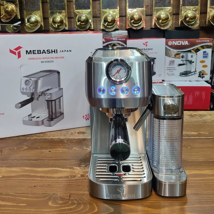 اسپرسو ساز مباشی مدل ME-ECM 2501 جدیدترین شاهکار کمپانی مباشی است در بین دستگاههای اسپرسوساز خانگی که با قابلیت ساخت کاپوچینو به صورت اتوماتیک به تازگی به بازار عرضه شده است.بدنه تمام استیل این دستگاه در کنار قدرت فشار بخار 20 بار و توان مصرفی 1350 وات یک شاهکار بی نظیر را از یک اسپرسوساز و کاپوچینو ساز اتوماتیک به منصه ظهور رسانده است.پیش از عرضه این مدل به بازار اسپرسوساز و کاپوچینو ساز مباشی مدل 2500 با مشخصات بدنه پلاستیک فشرده، فشار بخار 15 بار و توان مصرفی 1250 وات در بازار ایران موجود بود. اما سری جدید کاپوچینو ساز اتوماتیک مباشی تحت عنوان مباشی 2501 نمونه بسیار زیباتر، طراحی شکیل تر و قدرتمندتر از نسل قبلی خود می باشد.ظرف مخصوص شیر از جنس پلاسیتک شفاف است که در کنار دستگاه قرار می گیرید و از طریق یک رابط به دستگاه متصل می شود. ظرف شیر را به راحتی می توانید از دستگاه جدا کرده و آنرا بشویید.