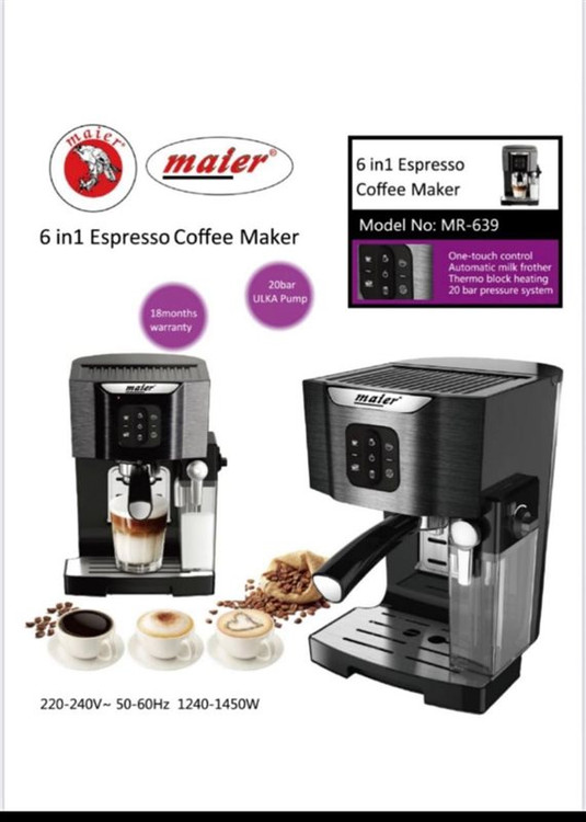 اسپرسو ساز حرفه ای مایر مدل 639 دستگاهی خوشساخت، نیمه اتوماتیک و دارای 6 علملکرد است که میتواند تبدیل به محبوب همه عاشقان قهوه شود. این دستگاه دارای مخزن شیر تمام اتوماتیک میباشد و با پرتاب بخار 20 بار، علملکرد بسیار خوبی را ارائه میکند. با داشتن این دستگاه به راحتی میتوان از نوشیدنیهایی از قبیل اسپرسو، آمریکانو، کاپوچینو، لاته و موکا و... لذت برد. این دستگاه دارای قابلیت شستشوی اتوماتیک نیز میباشد.