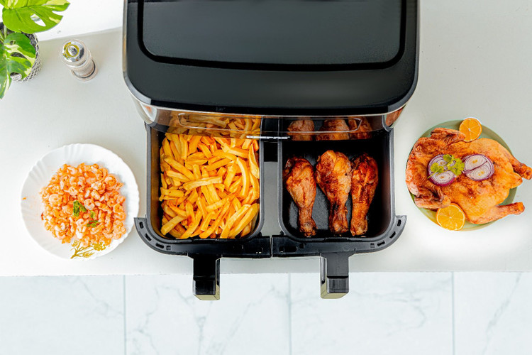قابلیت پخت کلیه غذاها از جمله سیب زمینی مرغ استیک میگو کیک ماهی پیتزا سبزیجات میوه خشک کن
