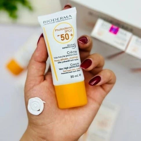 کرم ضدآفتاب بایودرما اسپات بی رنگ Spf50 ضد چروک و ضدلک ماندگاری بالا روی پوست فاکتور حفاظتی UVA و UVB ضدآب و تعریق بدون ایجاد سفیدی رو پوست حجم 30 میل